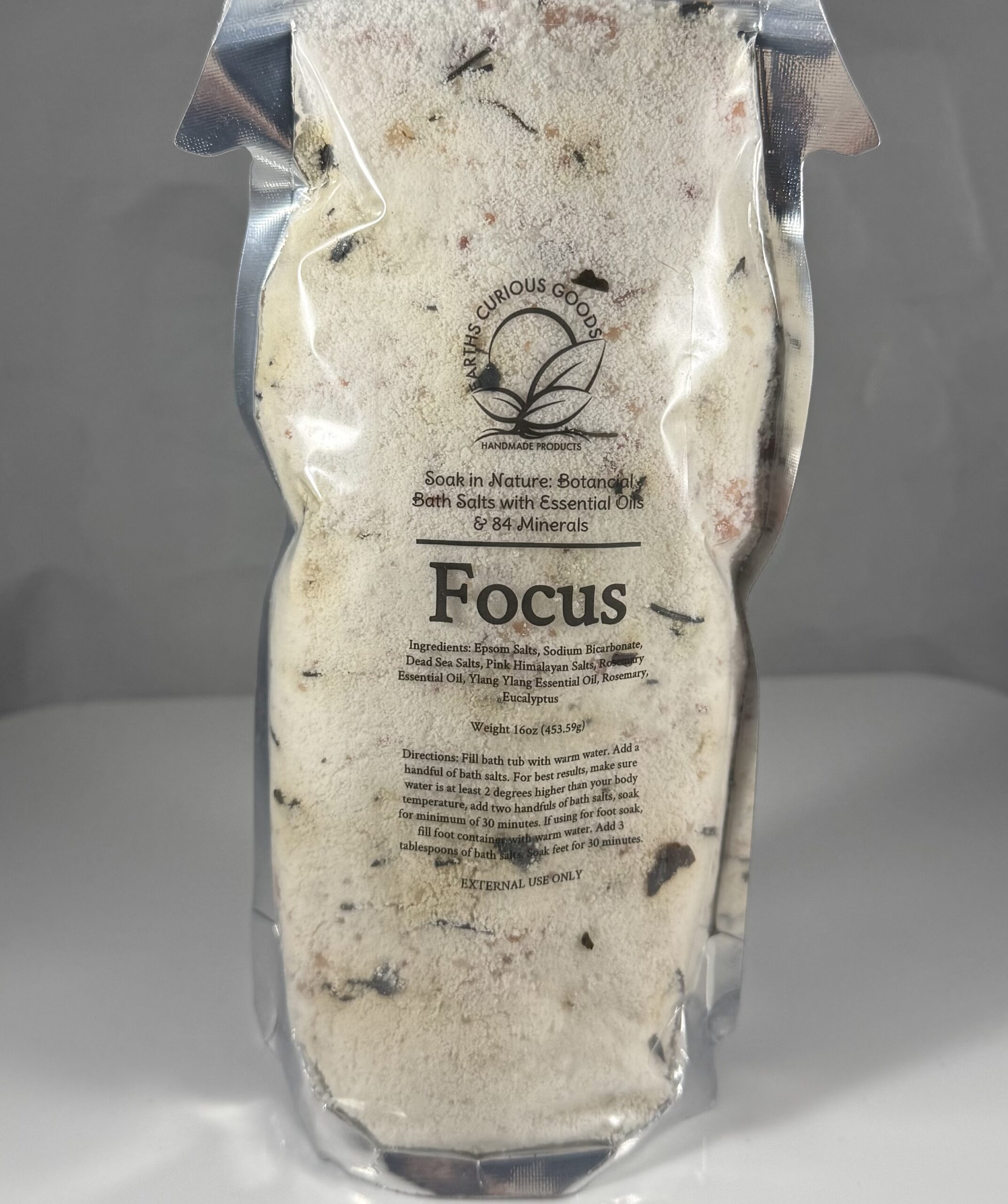 Focus, Focus, Focus! These bath salts were formulated using only natural ingredients and essential oils to help with clarity, stress, and the need-to-remember. It is said that this combination will help with stress reactions and memory. Our recipe utilizes luxurious salts to calm your daily stresses away while the essential oils are said to have anti-depression and anti-anxiety properties.